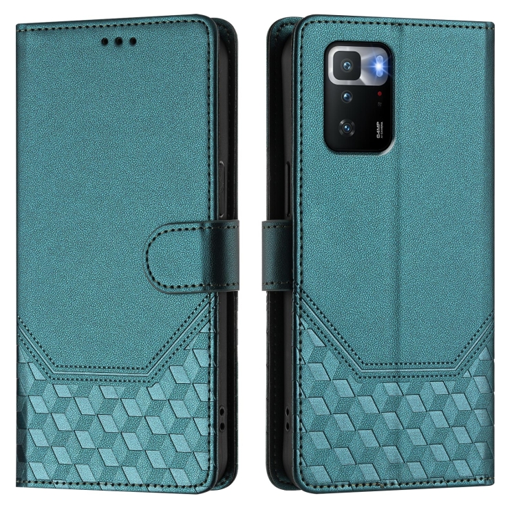 Funda de Cuero Rfid con Relieve En Panal para Xiaomi Poco X3 Gt (Verde Pavo Real)