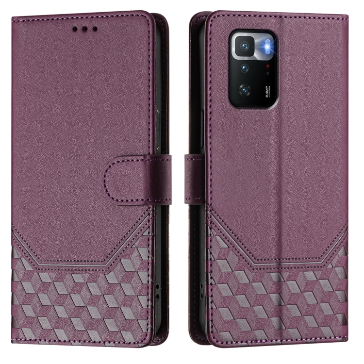Funda de Cuero Rfid con Relieve En Panal para Xiaomi Poco X3 Gt (Violeta)