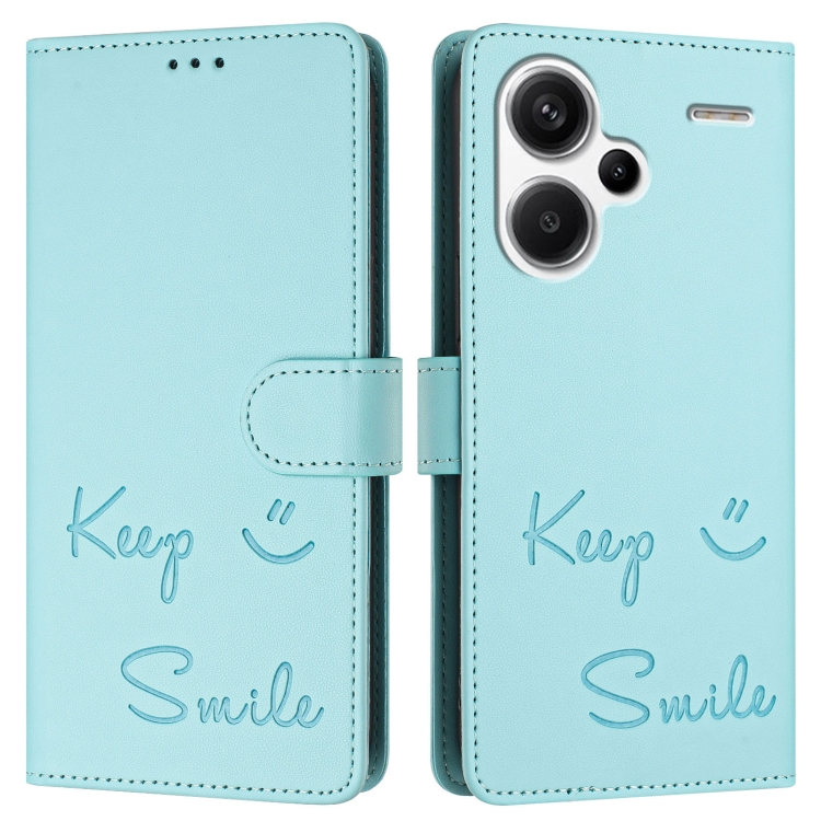Funda de Cuero Rfid con Relieve Global Smile para Redmi Note 13 Pro+ (Verde Menta)