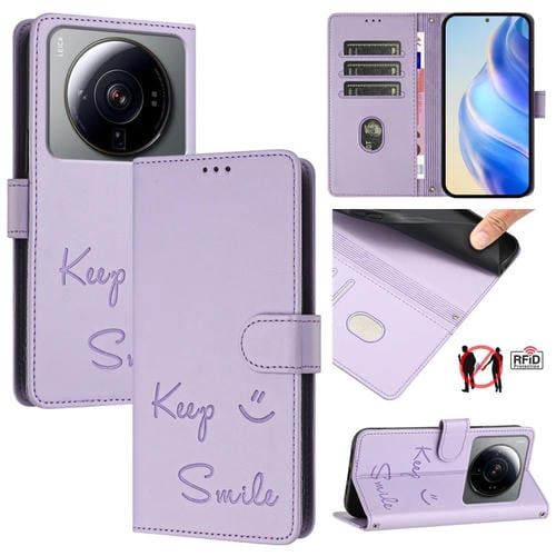 Funda de Cuero Rfid con Relieve Smile para Xiaomi 12S Ultra (Morado Claro)