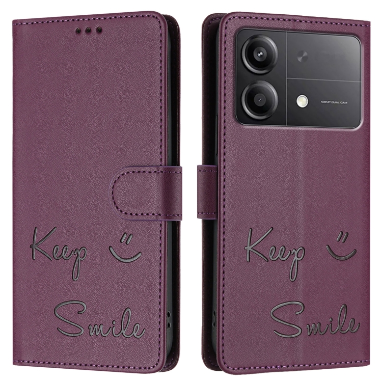 Funda de Cuero Rfid con Relieve Smile para Xiaomi Poco X6 Neo (Violeta)