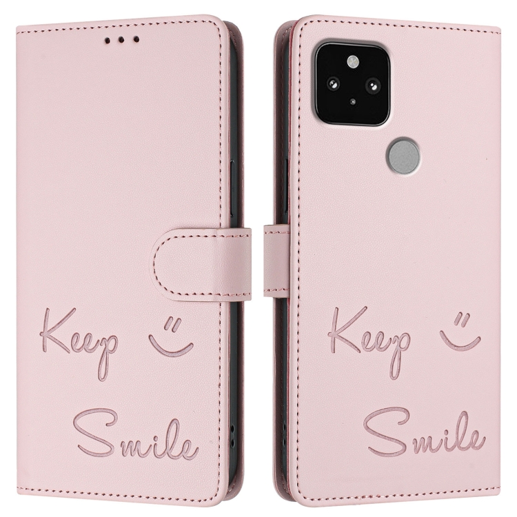 Funda de Cuero Rfid con Relieve Sonriente para Google Pixel 5 (Rosa)