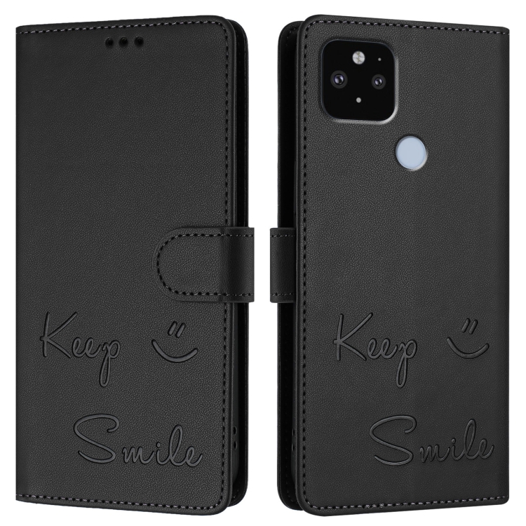 Funda de Cuero Rfid con Relieve Sonriente para Google Pixel 5 XL y Pixel 4A 5G (Negra)