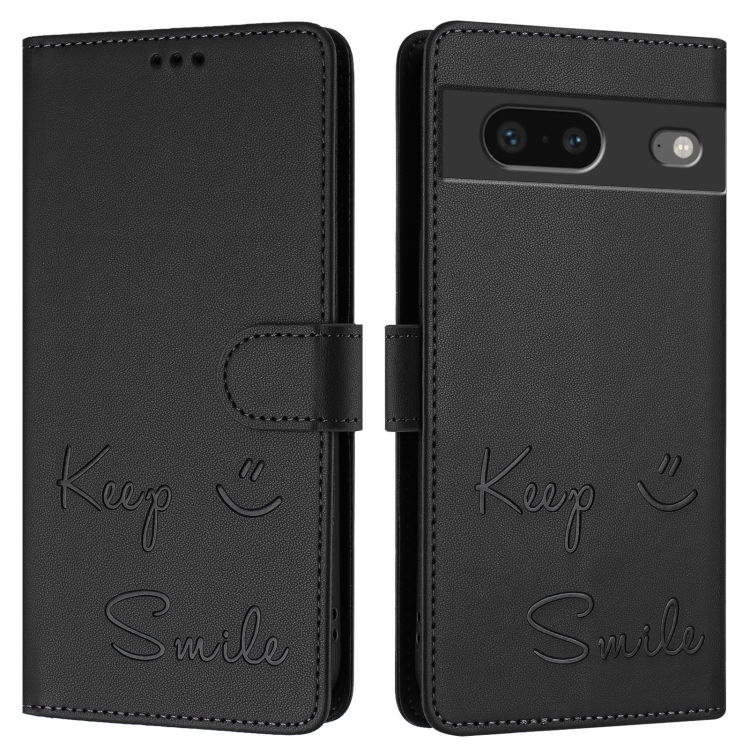 Funda de Cuero Rfid con Relieve Sonriente para Google Pixel 7 (Negra)