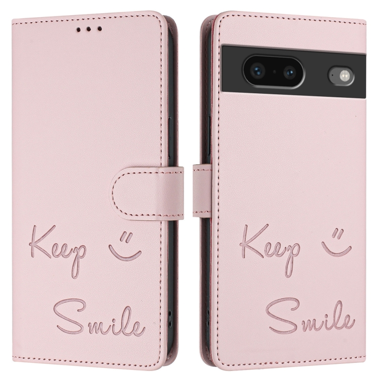 Funda de Cuero Rfid con Relieve Sonriente para Google Pixel 7 (Rosa)