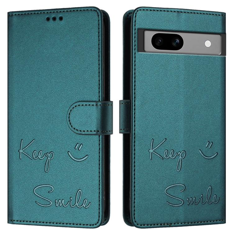 Funda de Cuero Rfid con Relieve Sonriente para Google Pixel 7A (Verde Pavo Real)