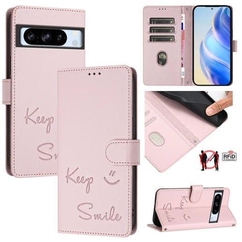 Funda de Cuero Rfid con Relieve Sonriente para Google Pixel 8 Pro (Rosa)