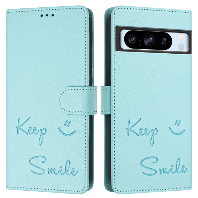 Funda de Cuero Rfid con Relieve Sonriente para Google Pixel 8 Pro (Verde Menta)