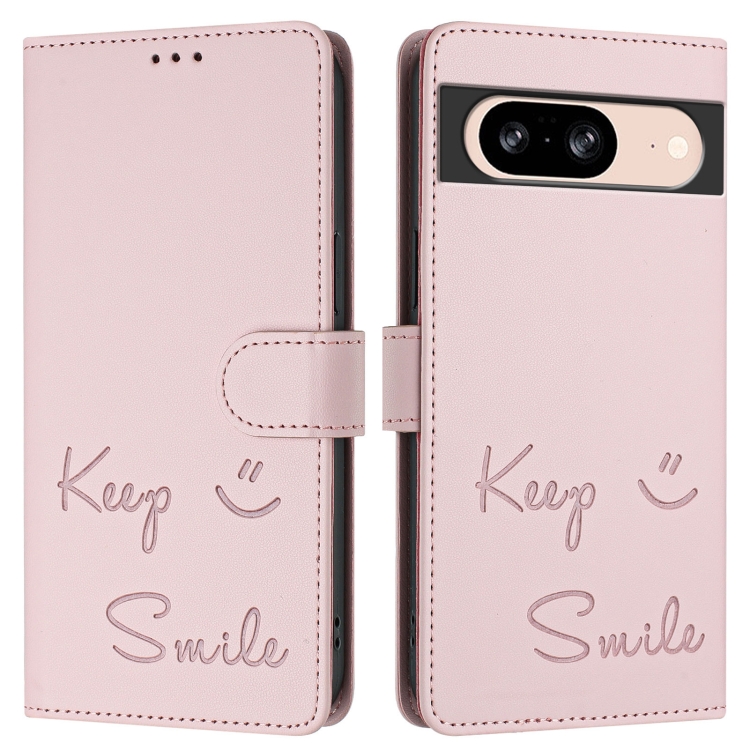 Funda de Cuero Rfid con Relieve Sonriente para Google Pixel 8 (Rosa)