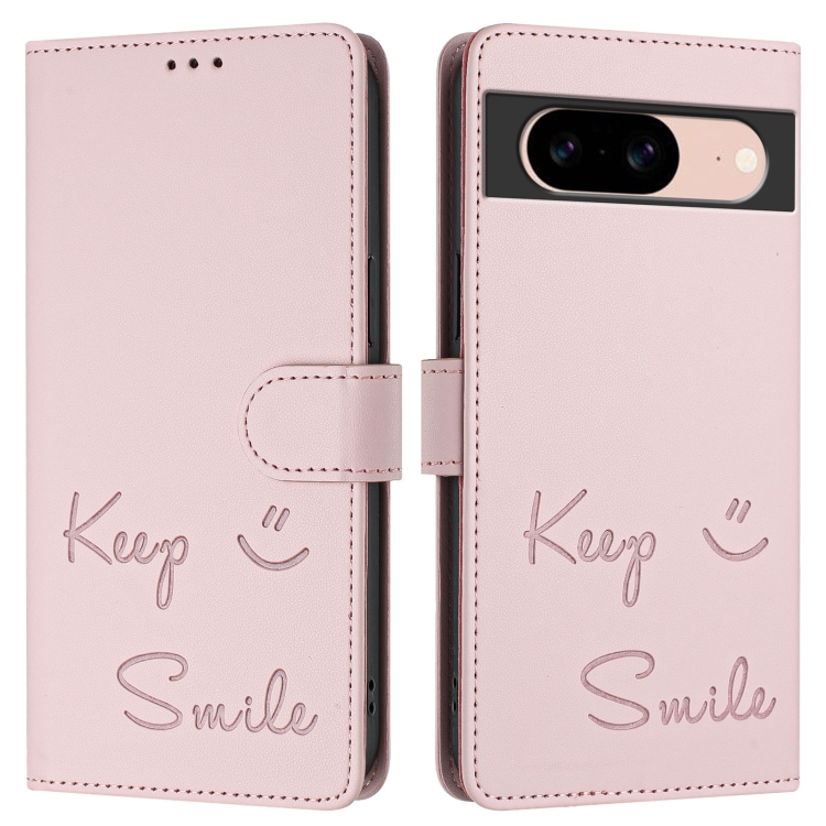 Funda de Cuero Rfid con Relieve Sonriente para Google Pixel 8A (Rosa)