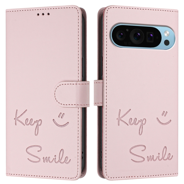 Funda de Cuero Rfid con Relieve Sonriente para Google Pixel 9 Pro Xl (Rosa)