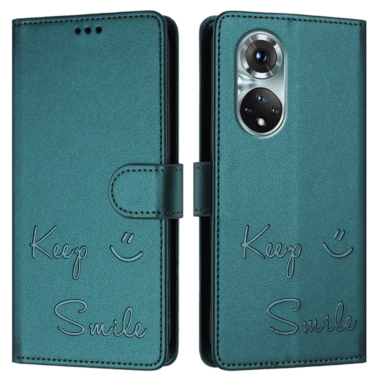 Funda de Cuero Rfid con Relieve Sonriente para Huawei Nova 9 Pro (Verde Pavo Real)