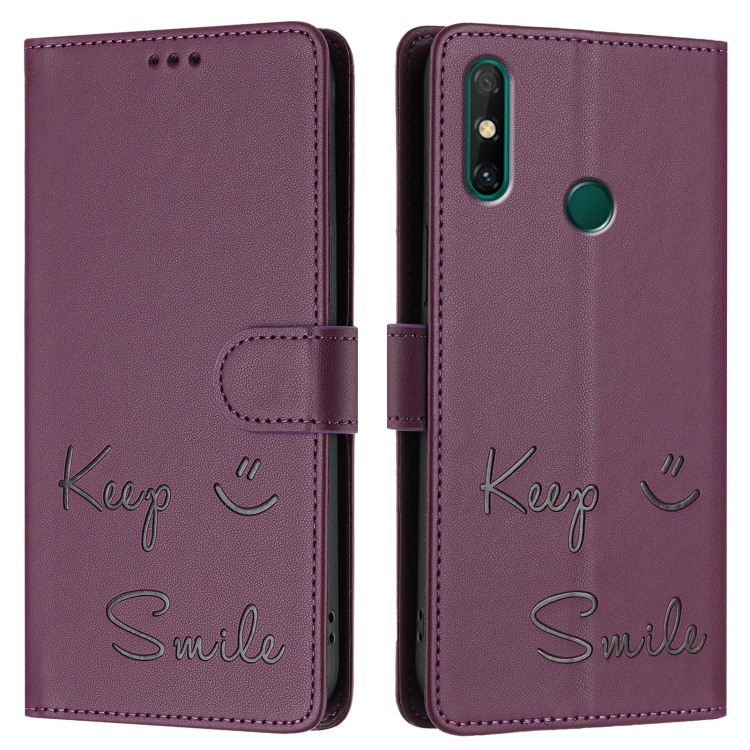 Funda de Cuero Rfid con Relieve Sonriente para Huawei P Smart 2021 4G (Violeta)