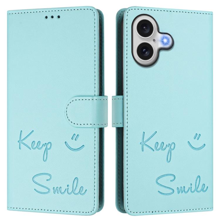 Funda de cuero RFID con relieve sonriente para iPhone 17 (verde menta)