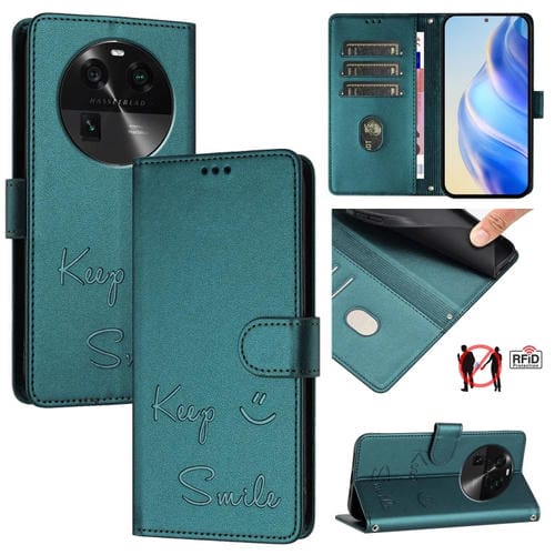 Funda de Cuero Rfid con Relieve Sonriente para Oppo Find X6 (Verde Pavo Real)
