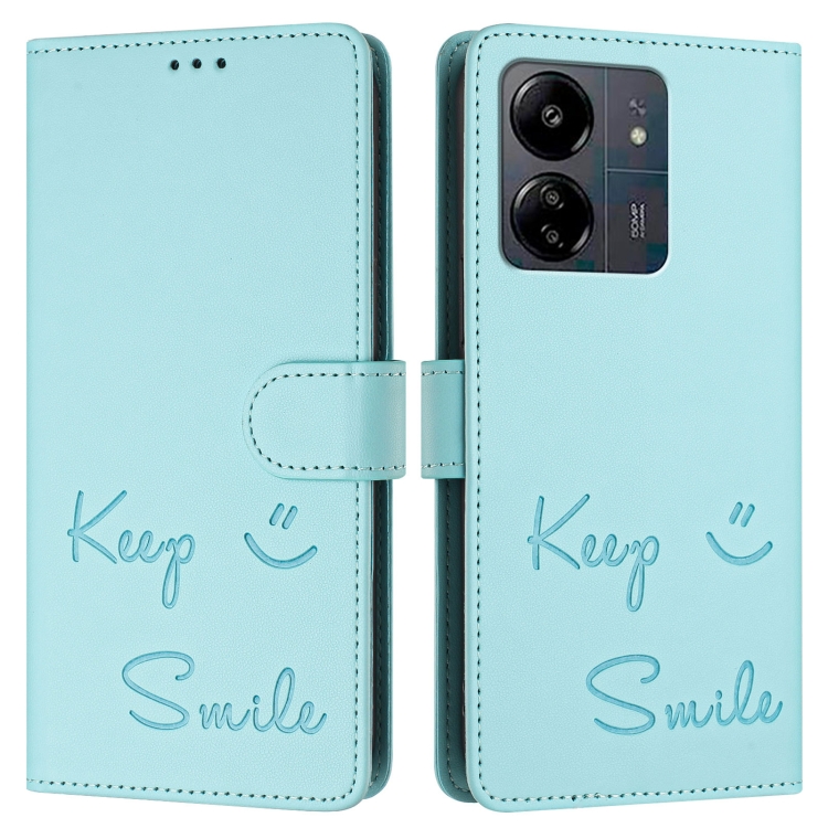 Funda de Cuero Rfid con Relieve Sonriente para Redmi 13C 4G (Verde Menta)