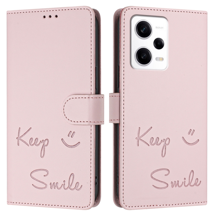 Funda de Cuero Rfid con Relieve Sonriente para Redmi Note 12 Pro+ 5G Global/India (Rosa)