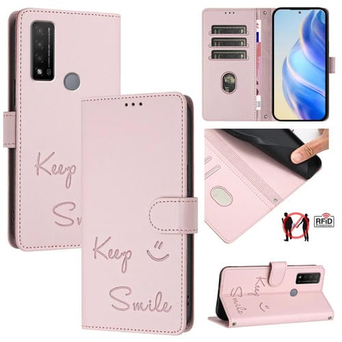 Funda de Cuero Rfid con Relieve Sonriente para TCL 20 R 5G (Rosa)