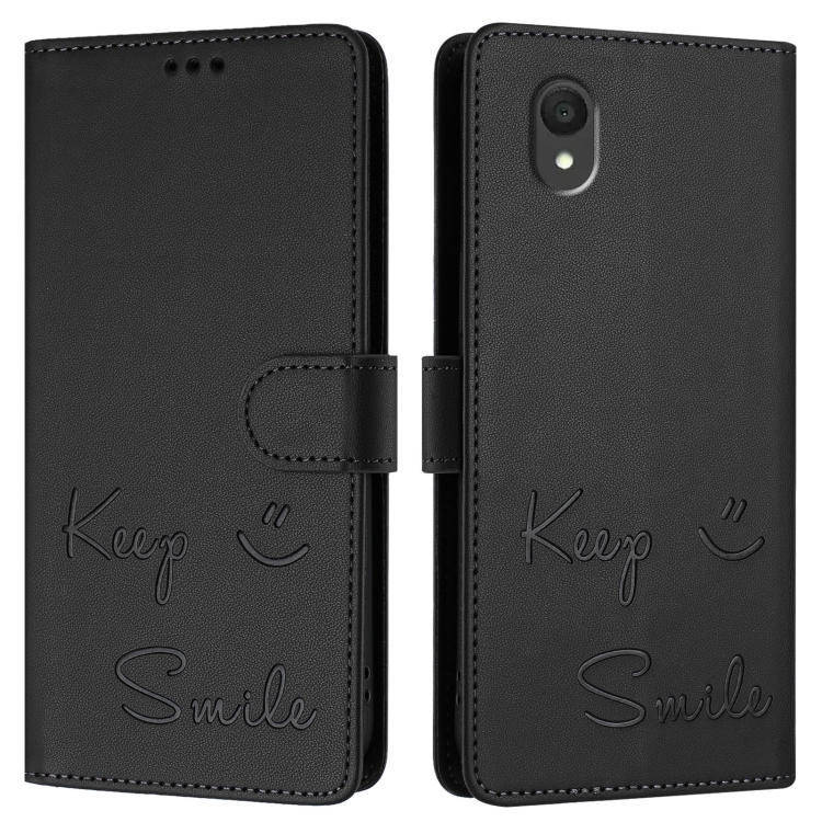 Funda de Cuero Rfid con Relieve Sonriente para TCL 201 (Negra)