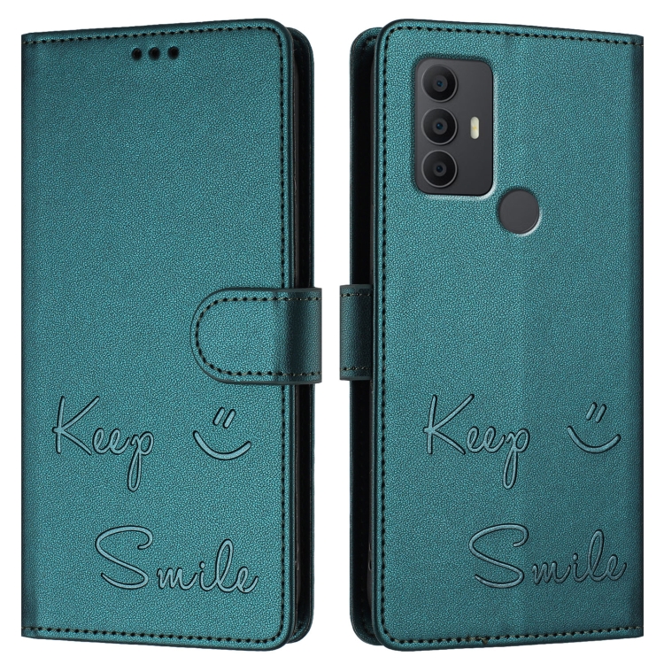 Funda de Cuero Rfid con Relieve Sonriente para TCL 305/306 (Verde Pavo Real)