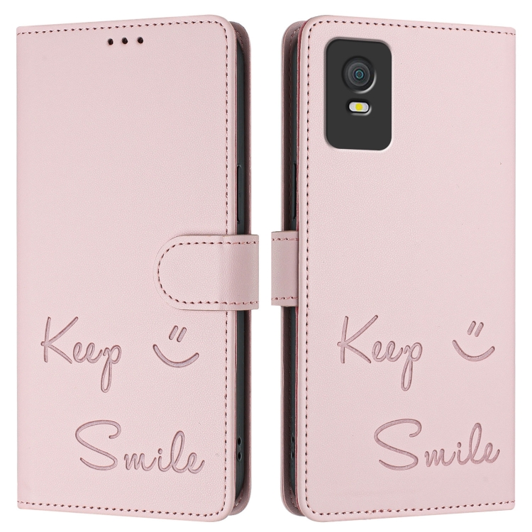Funda de Cuero Rfid para TCL 403 con Relieve Sonriente (Rosa)