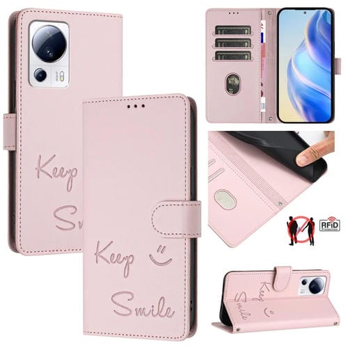 Funda de Cuero Rfid con Relieve Sonriente para Xiaomi 13 Lite/Civi 2 (Rosa)