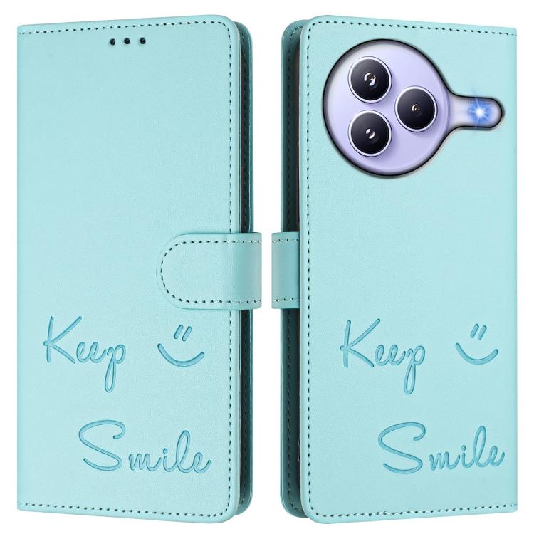 Funda de cuero RFID con relieve sonriente para Xiaomi Civi 5 Pro 5G (verde menta)