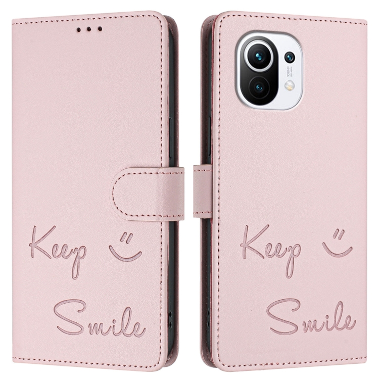 Funda de Cuero Rfid con Relieve Sonriente para Xiaomi Mi 11 (Rosa)