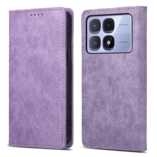Funda de Cuero Rfid Magnética para Teléfono Redmi K70 Ultra Business de Color Sólido (Morado)