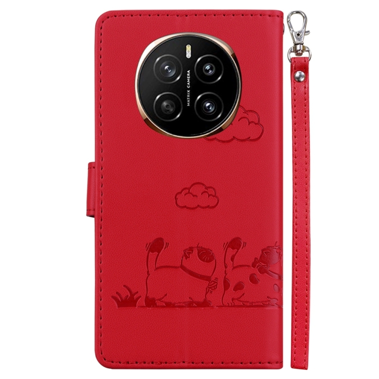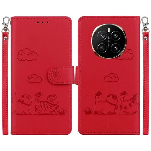 Funda de Cuero Rfid con Diseño de Gatos para Honor Magic7 (Roja)