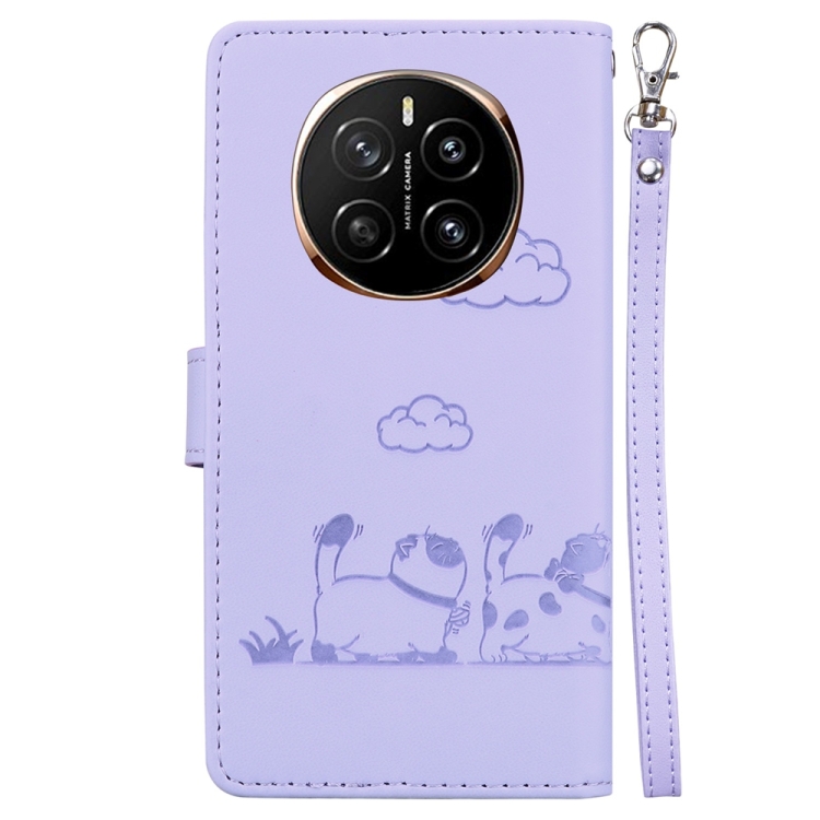 Funda de Cuero Rfid para Honor Magic7 con Diseño de Gatos (Morado)