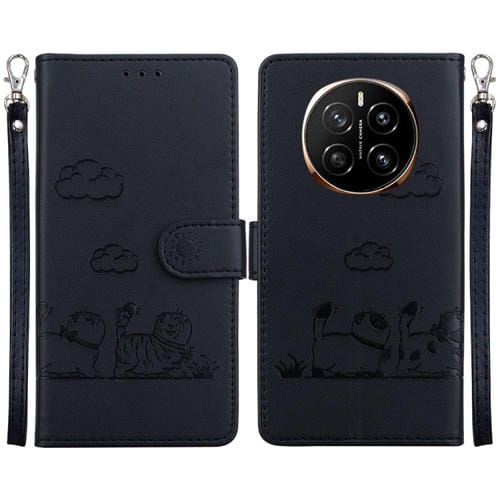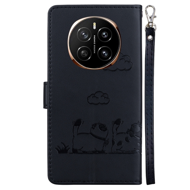 Funda de Cuero Rfid para Honor Magic7 con Diseño de Gatos (Negra)