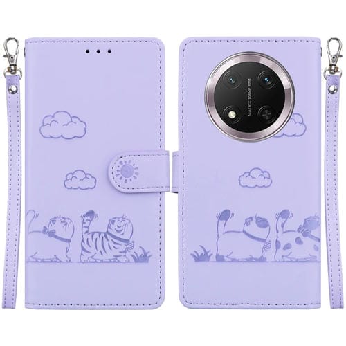 Funda de Cuero Rfid para Honor X9C con Diseño de Gatos (Morada)