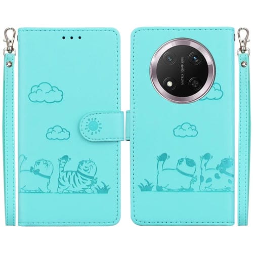 Funda de Cuero Rfid para Honor X9C con Diseño de Gatos (Verde)