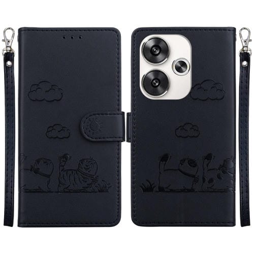 Funda de Cuero Rfid con Diseño de Gatos para Xiaomi Poco F6 (Negra)