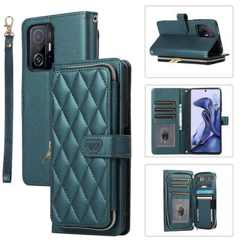 Funda de Cuero Tipo Billetera con Cremallera Completa y Diseño Rombal para Xiaomi Mi 11T/11T Pro (Verde)