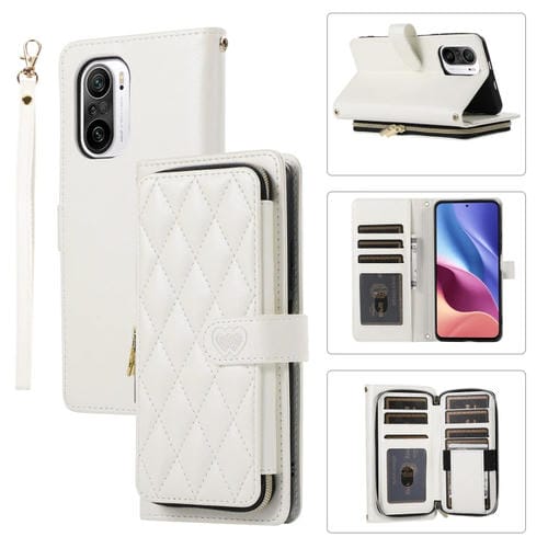 Funda de Cuero Tipo Billetera con Cremallera Completa y Diseño Romboidal para Redmi K40 (Blanca)