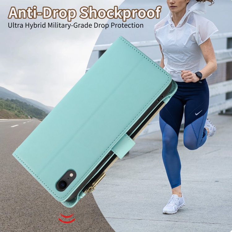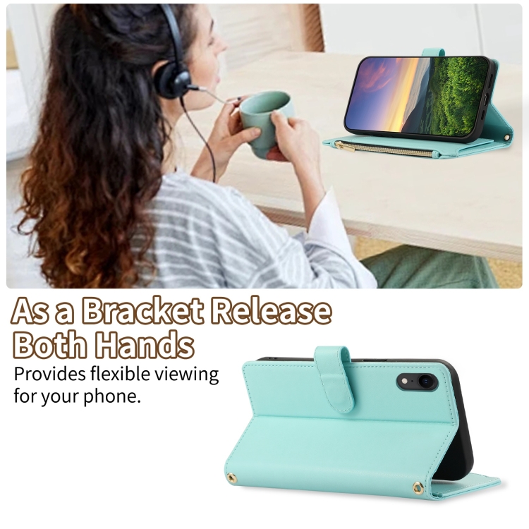 Funda de Cuero Tipo Billetera con Cremallera en Forma de Rombo para iPhone Xr (Cian)