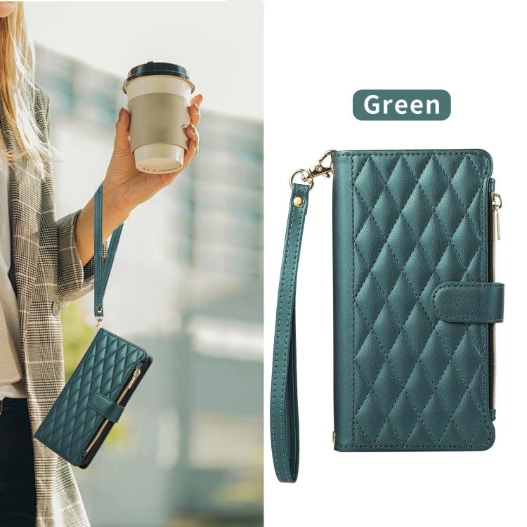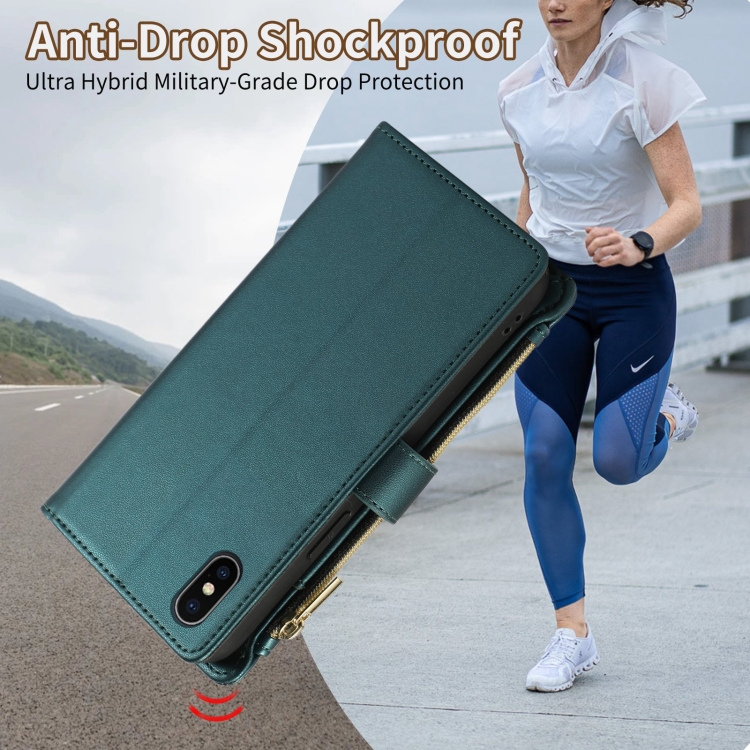 Funda de Cuero Tipo Billetera con Cremallera en Forma de Rombo para iPhone Xs Max (Verde)