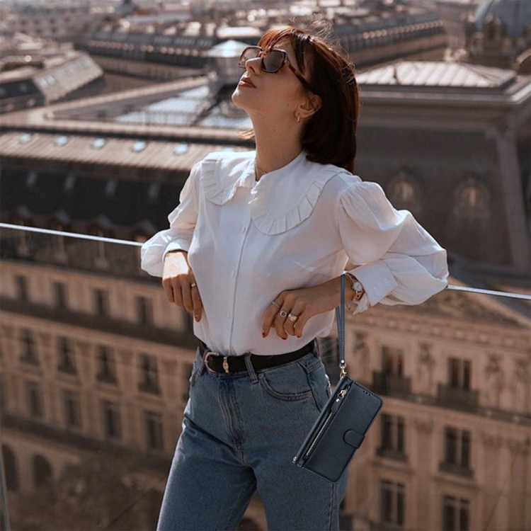 Funda Cuero Tipo Billetera Huawei P50 con Cremallera y Ranuras para Tarjetas (Negra)