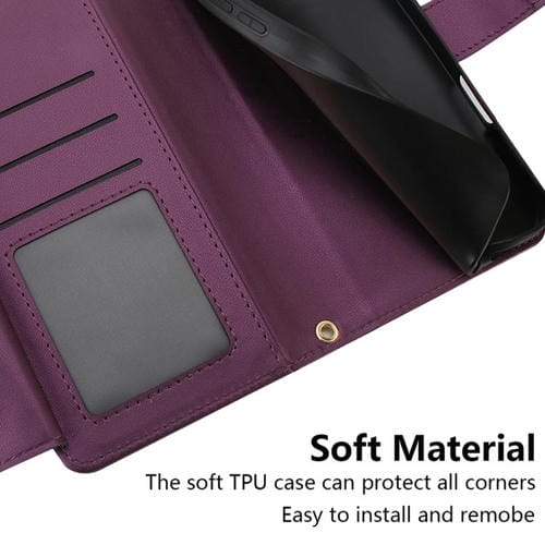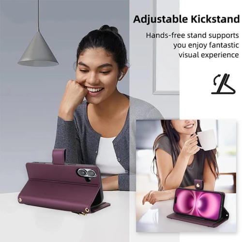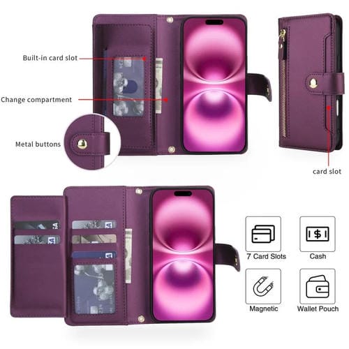 Funda de cuero tipo billetera con cremallera y siete ranuras para tarjetas para iPhone 17 (morado oscuro)