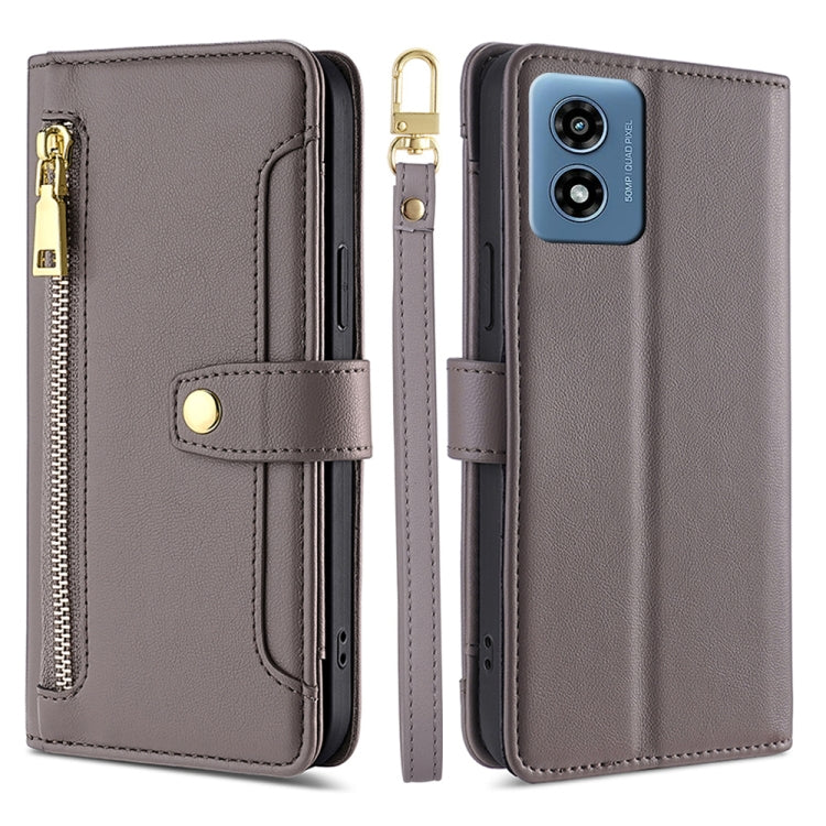 Funda de Cuero Tipo Billetera con Cremallera y Textura de Oveja para Motorola Moto G 5G (2024) (Gris)