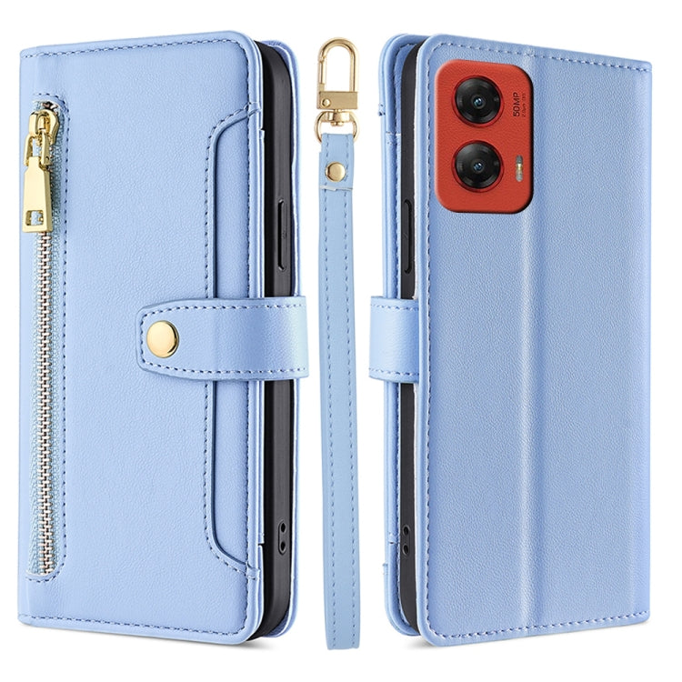 Funda de Cuero Tipo Billetera con Cremallera y Textura de Oveja para Motorola Moto G Stylus 5G (2024) (Azul)