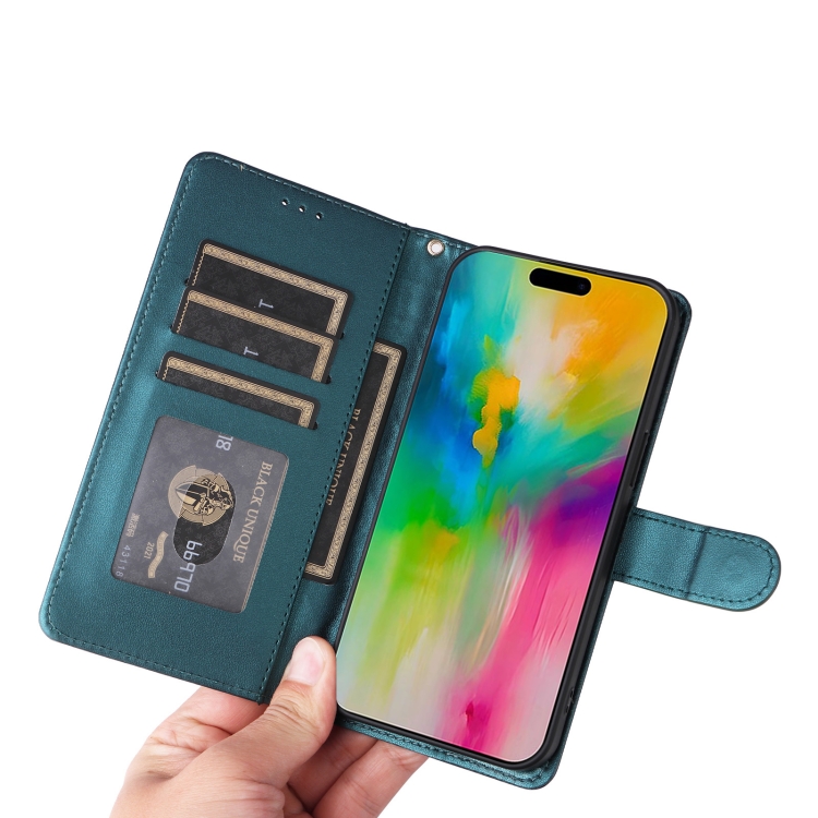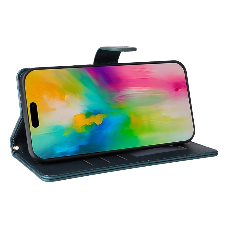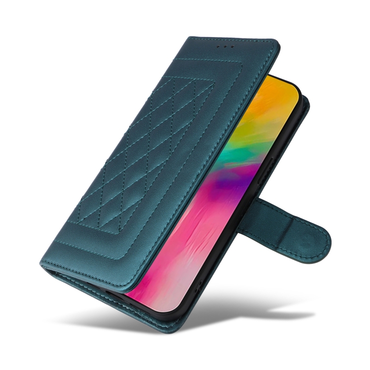 Funda Tipo Cartera Cuero Entramado Diamantes iPhone 16 Pro Max (Verde)