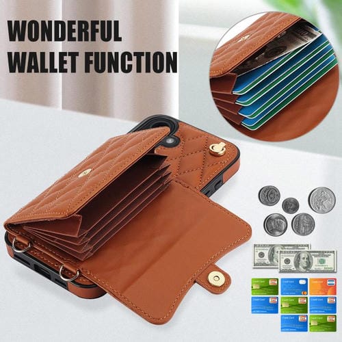 Funda de cuero tipo cartera horizontal con diseño rómbico cruzado para iPhone 17 (marrón)