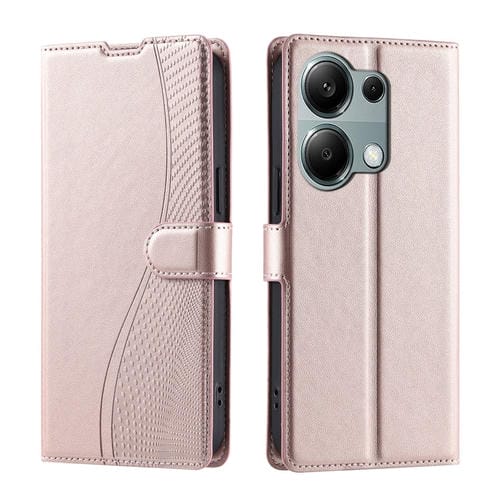 Funda de Cuero Ultrafina con Puntos para Teléfono Xiaomi Poco M6 Pro 4G Voltage (Oro Rosa)