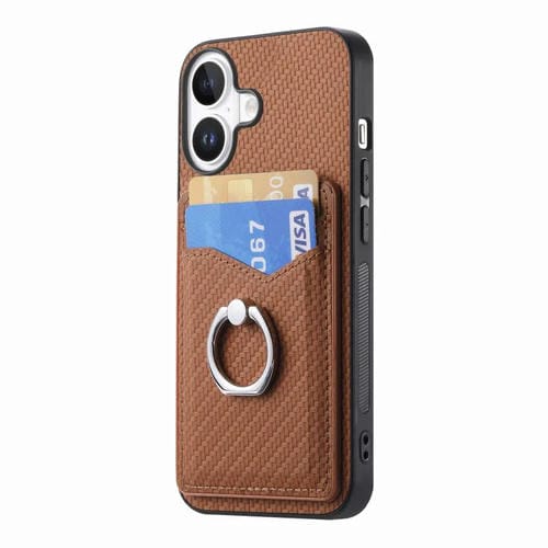 Funda de fibra de carbono con anillo para tarjeta para iPhone 17 (marrón)