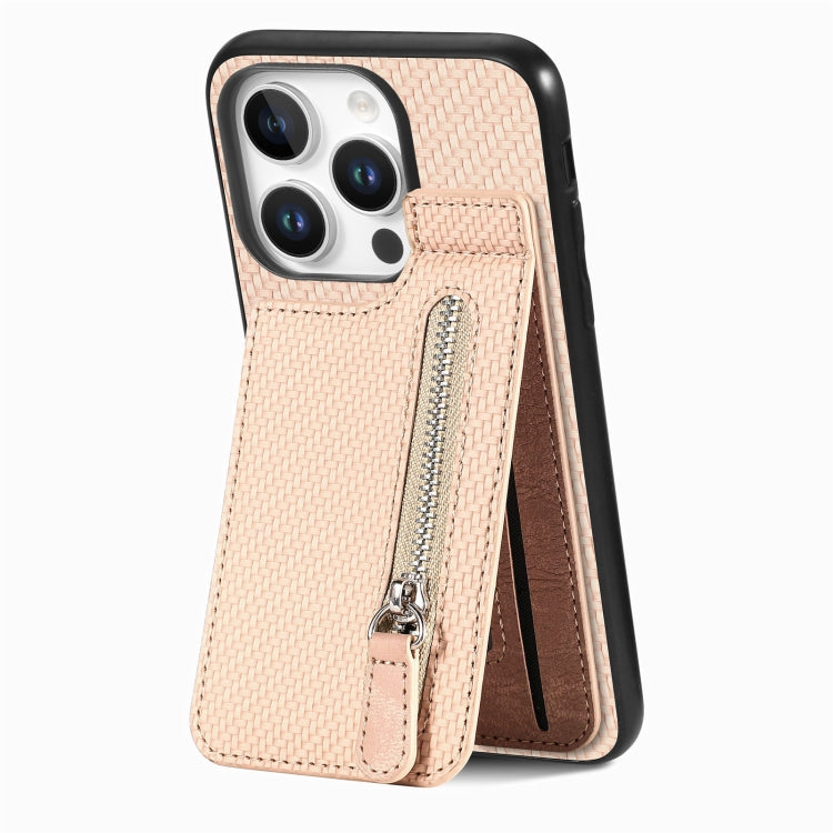 Funda Fibra de Carbono iPhone 16 Pro Max Tapa Vertical Cremallera (Caqui)