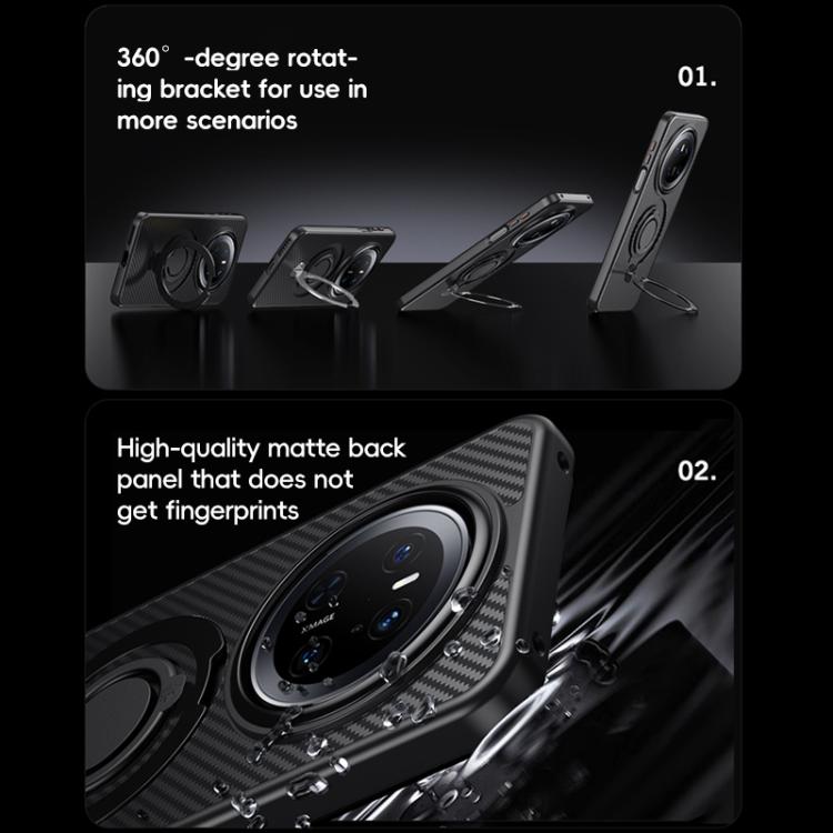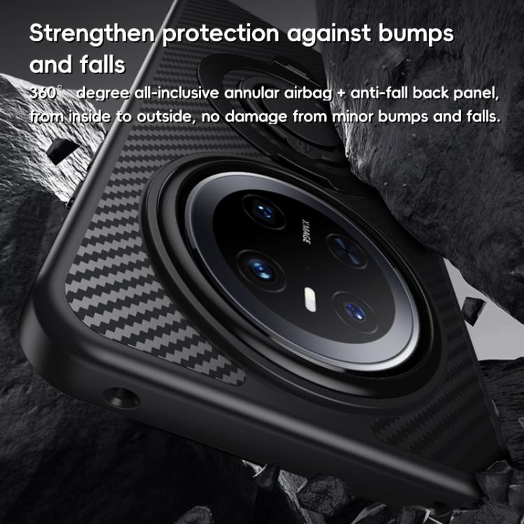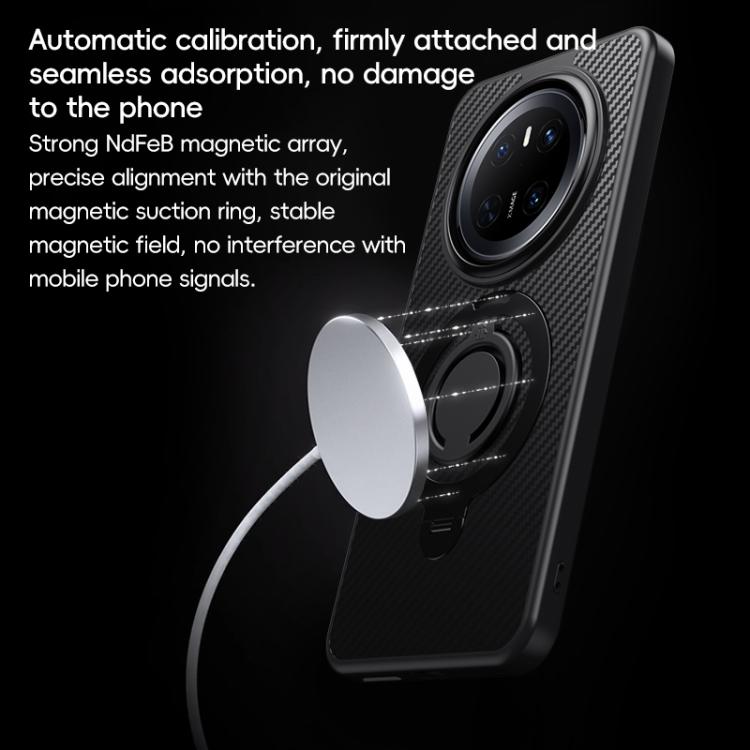 Funda Fibra de Carbono Magsafe Huawei Mate 70 con Soporte Giratorio 360 Grados (Negra y Plateada)