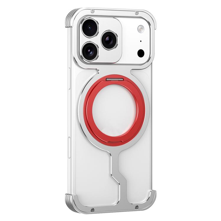 Funda de metal con disipación de calor y soporte magnético MagSafe sin marco para iPhone 17 Pro Max (plateada y roja)
